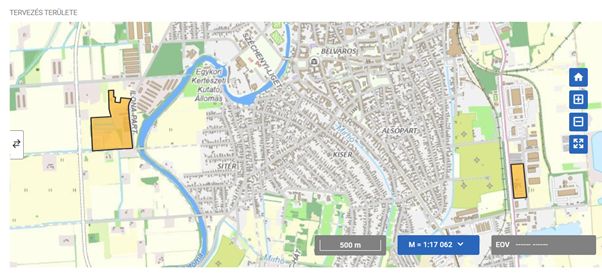 A tárgyi módosítással érintett területek a mellékelt képen láthatóak kiemelve.